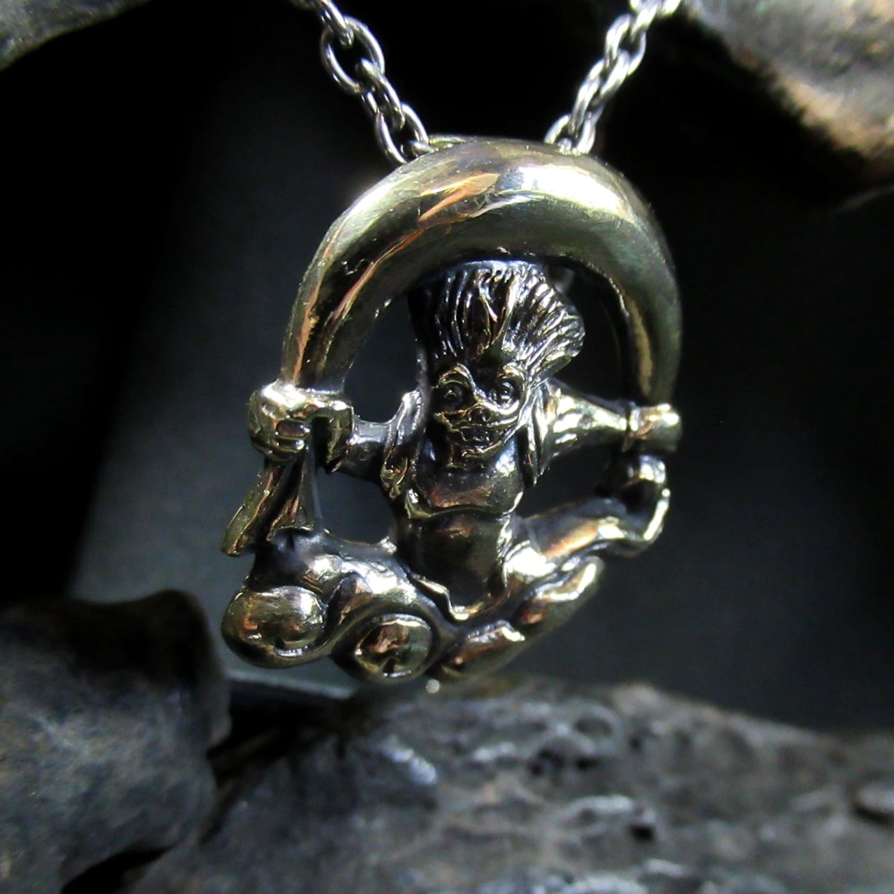 日本の神道に登場する風神をモチーフにした、力強く美しいデザインのペンダントです、