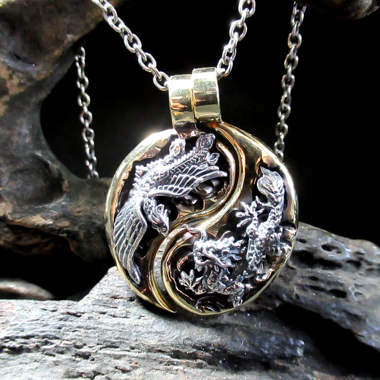 この陰陽ペンダントは、土台なる部分はBRASSを使用龍の部分はSILVERとなります、