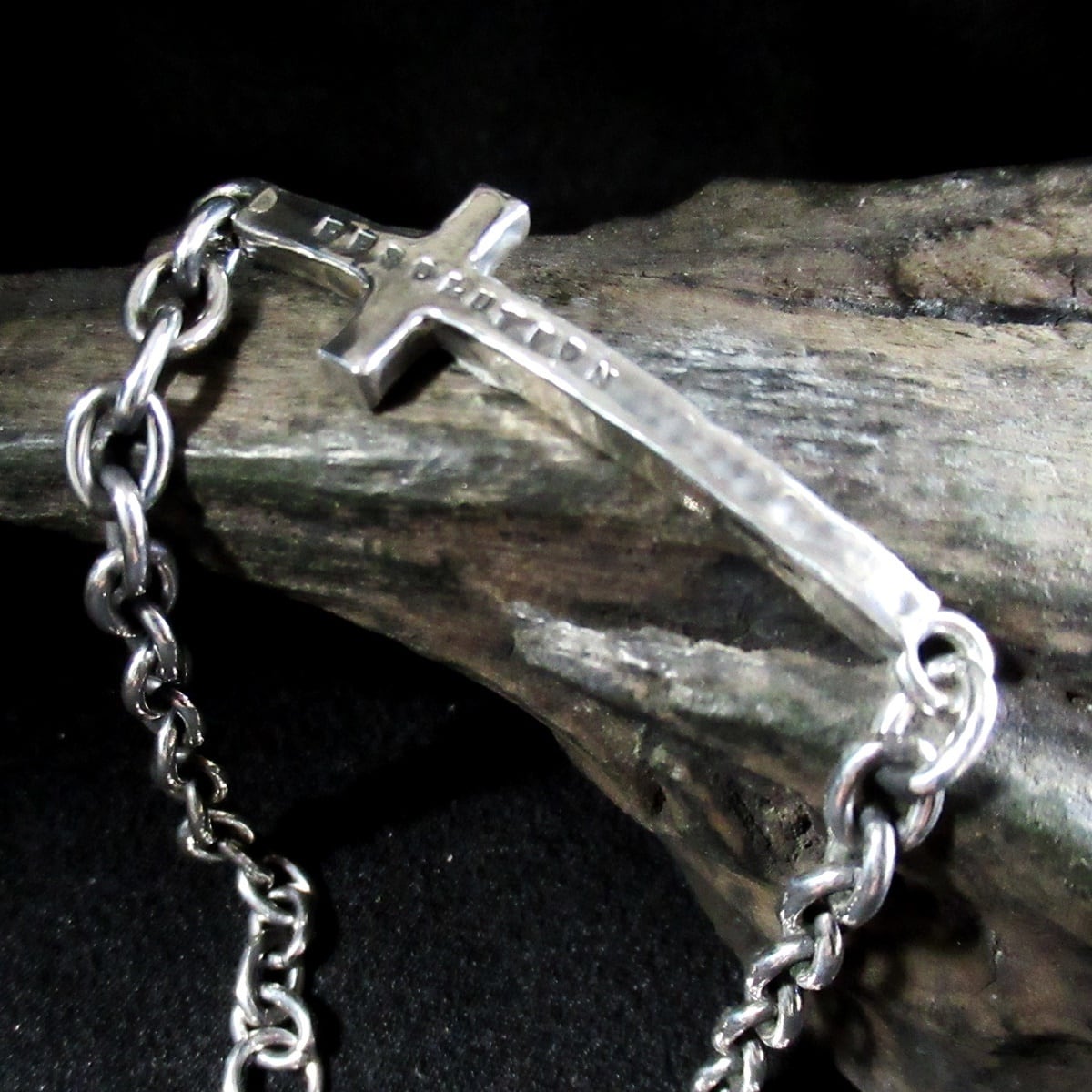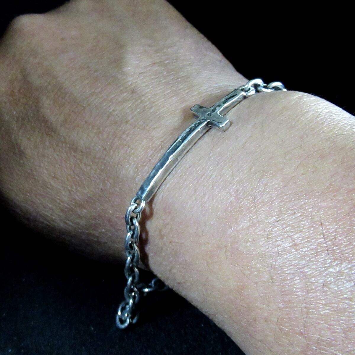 あえて細長にデザインされたクロス にチェーンをセットした、ブレスレット