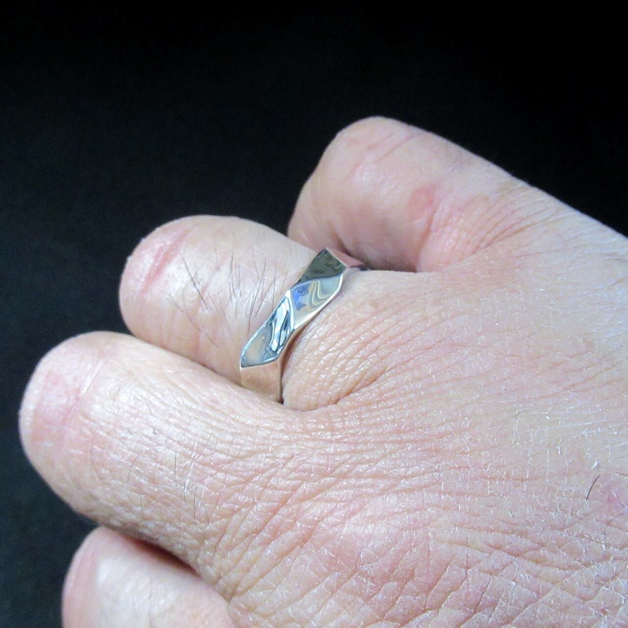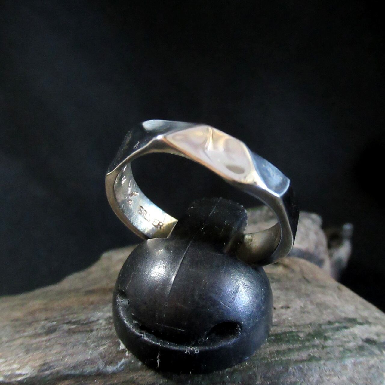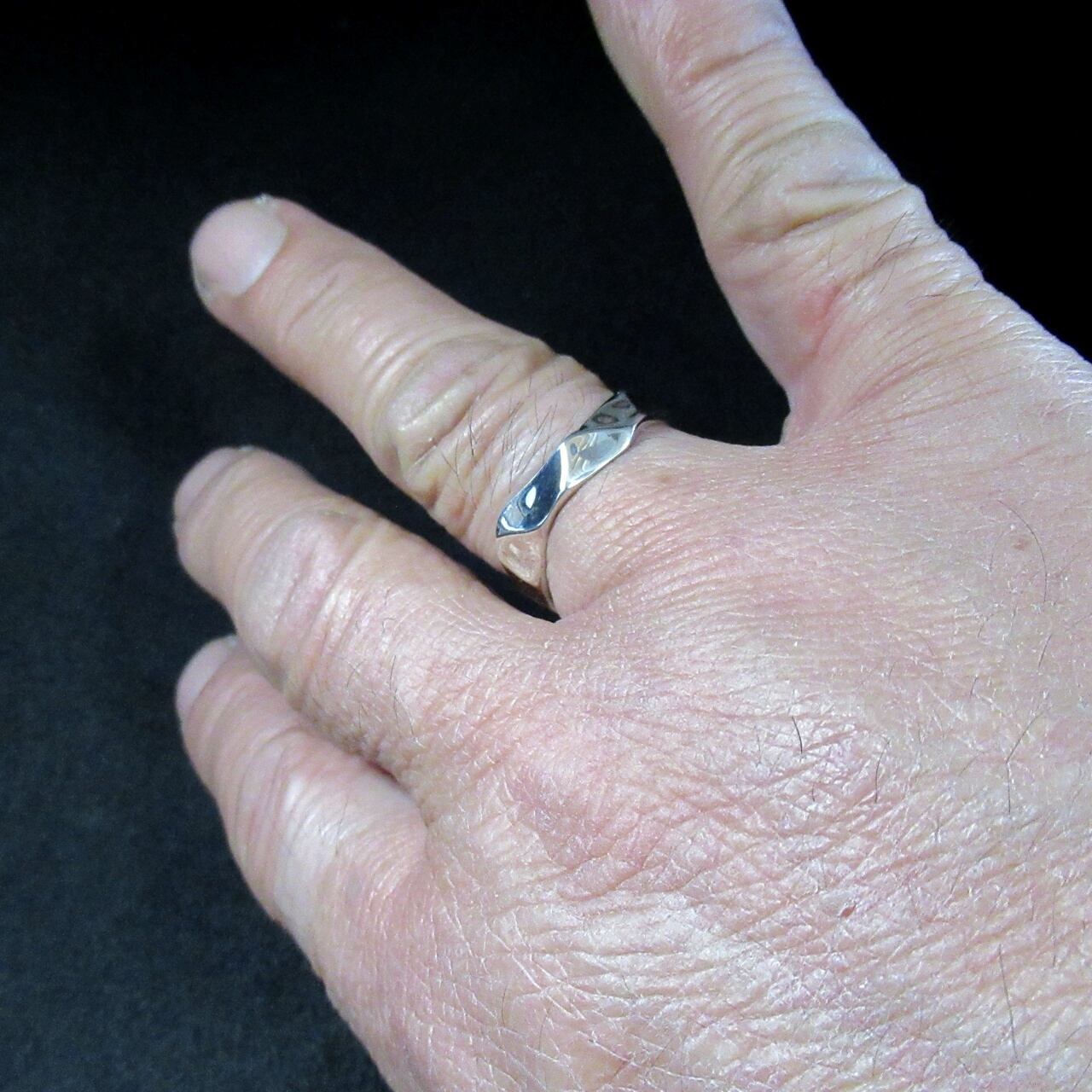シンプルでありながら、ラフなカットが施されたこのリングは、荒々しい美しさが特徴の