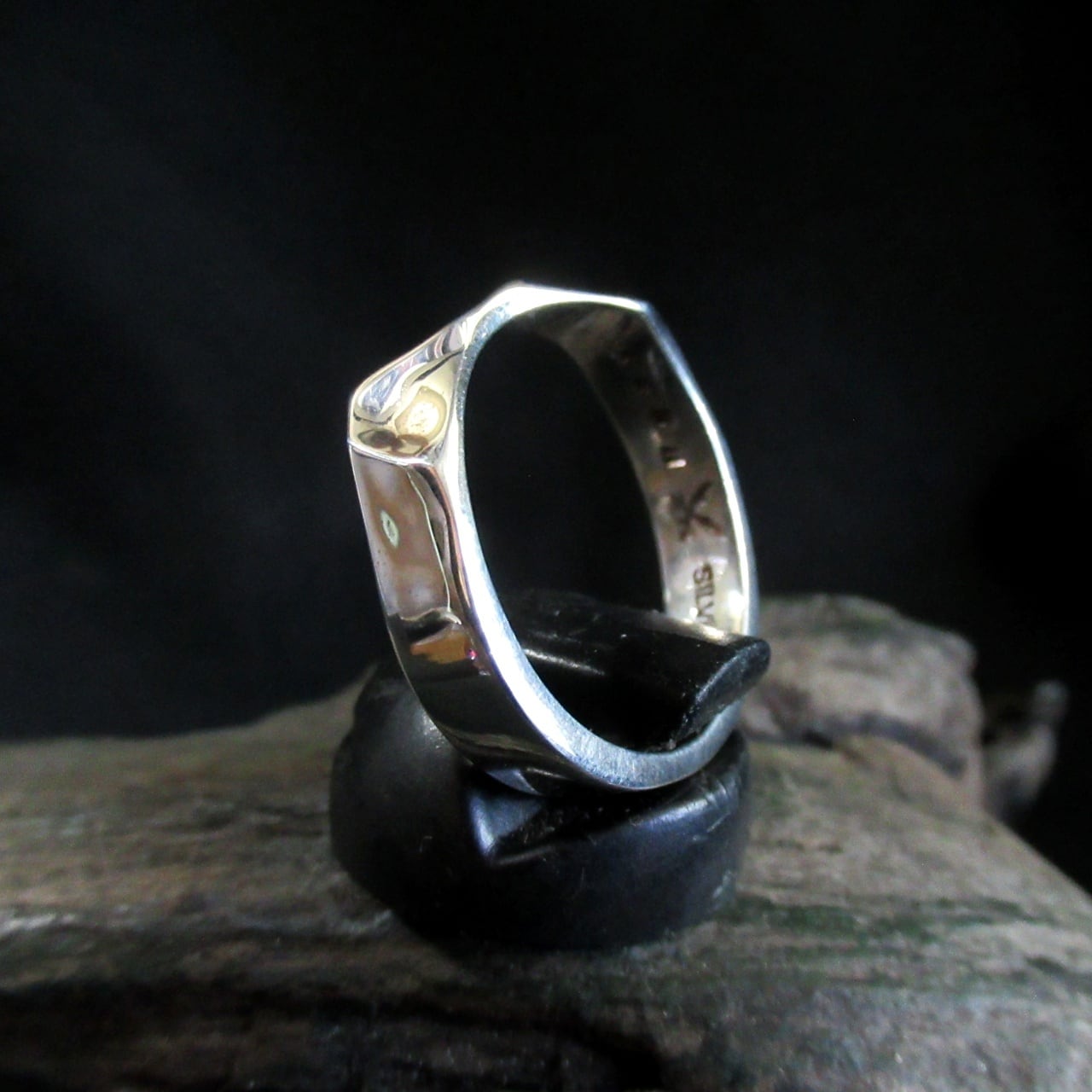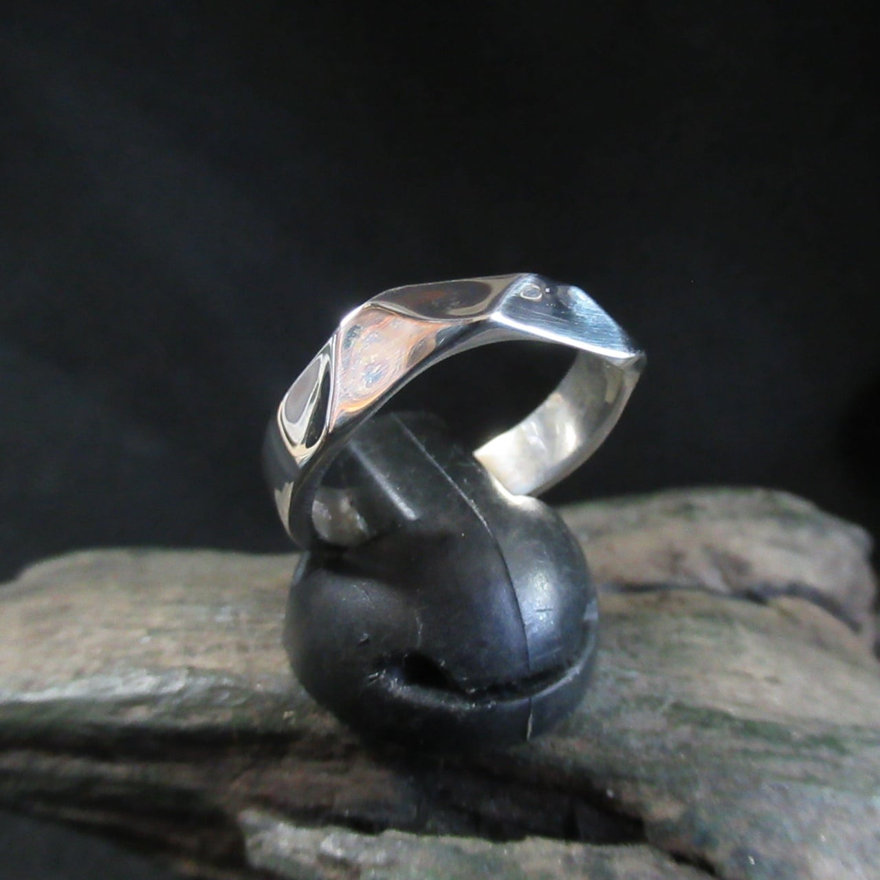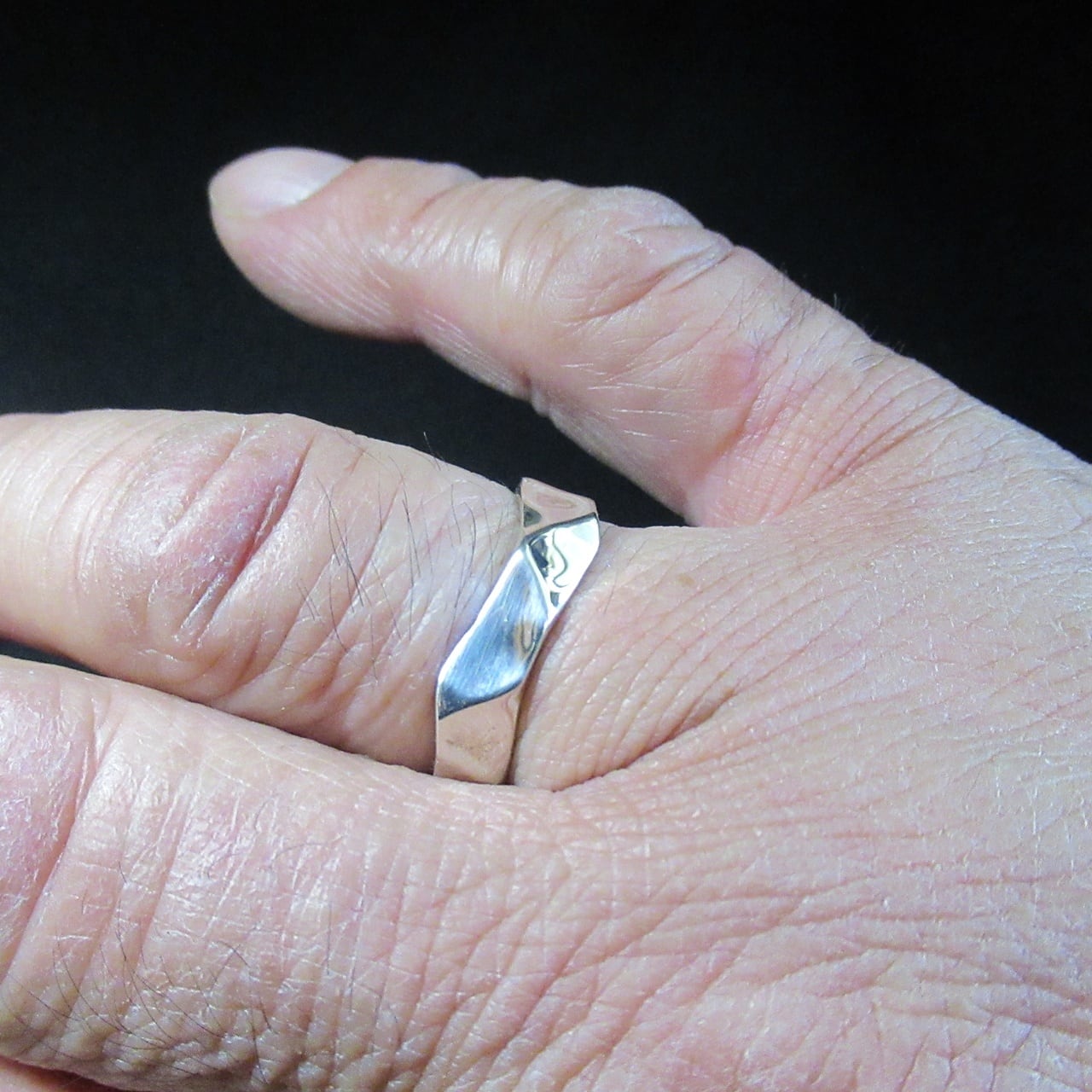 シンプルでありながら、ラフなカットが施されたこのリングは、荒々しい美しさが特徴の