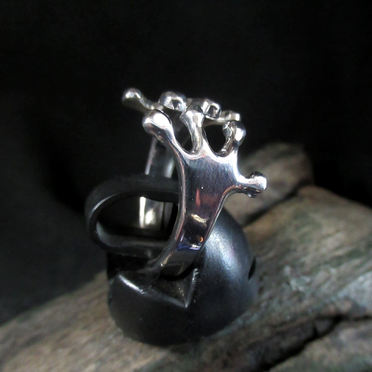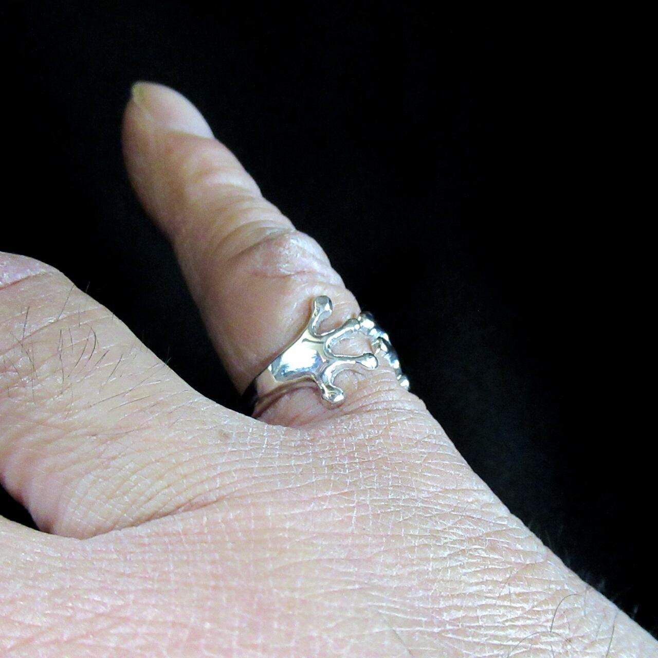 可愛らしいカエルの手が指にしがみつくユニークなデザインが特徴のリングとなります