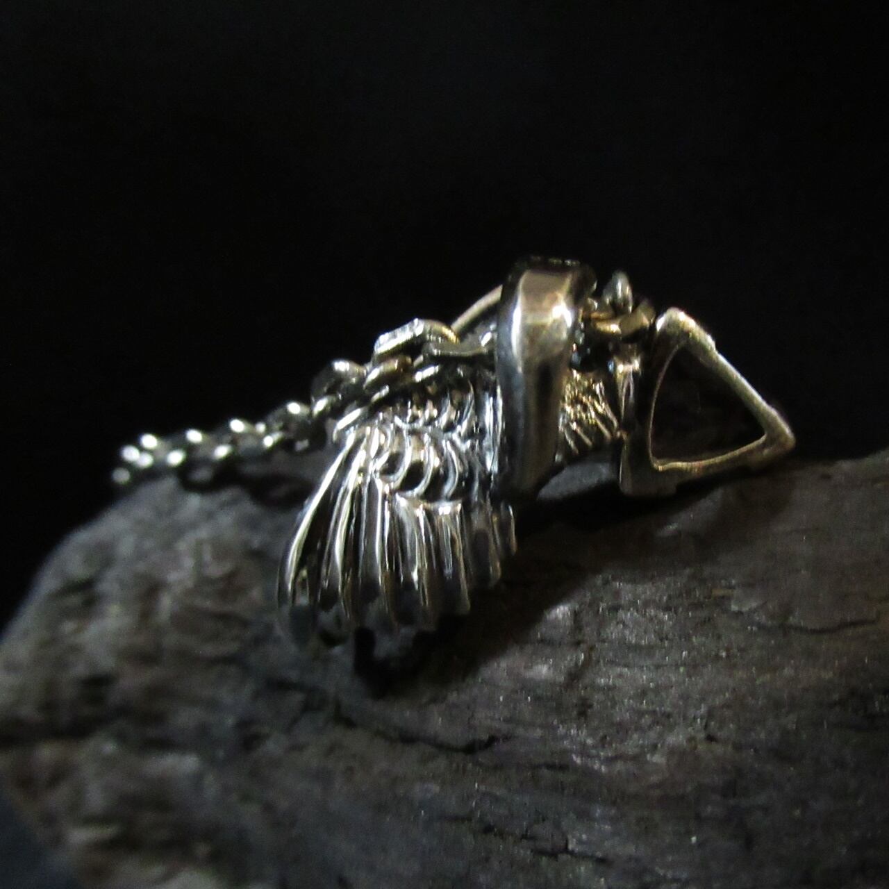 小さいながらも細部まで創り込まれた翼のディテールが美しい、新しいタイプの羽のペンダントになります