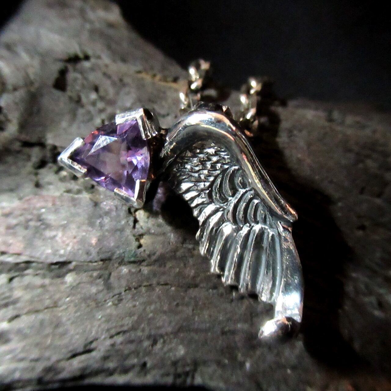 天使の羽にトリリアントカットの石を合わせたペンダント