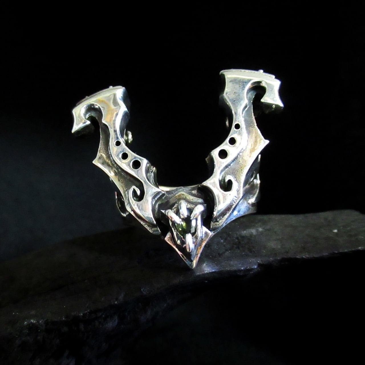 ホースシューの先端にはグリーンサファイアが入ります