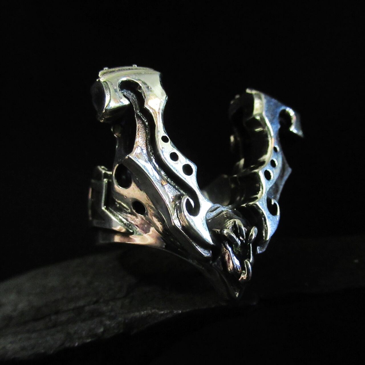 正面から見ると馬蹄となる部分が立体的に創られ、ARMSテイスト香り漂う造りのリングに