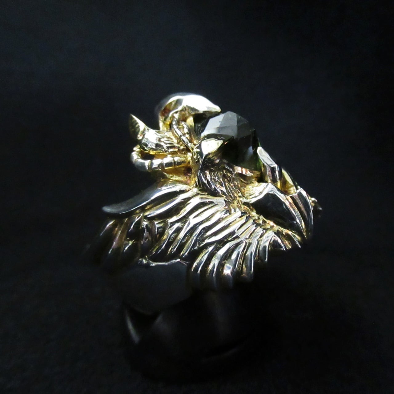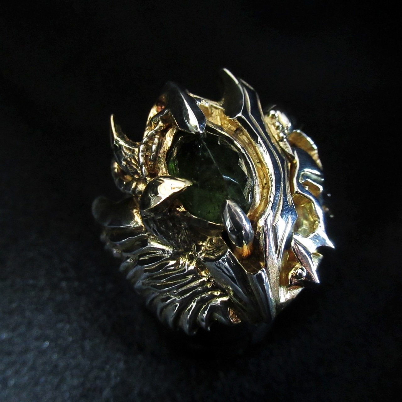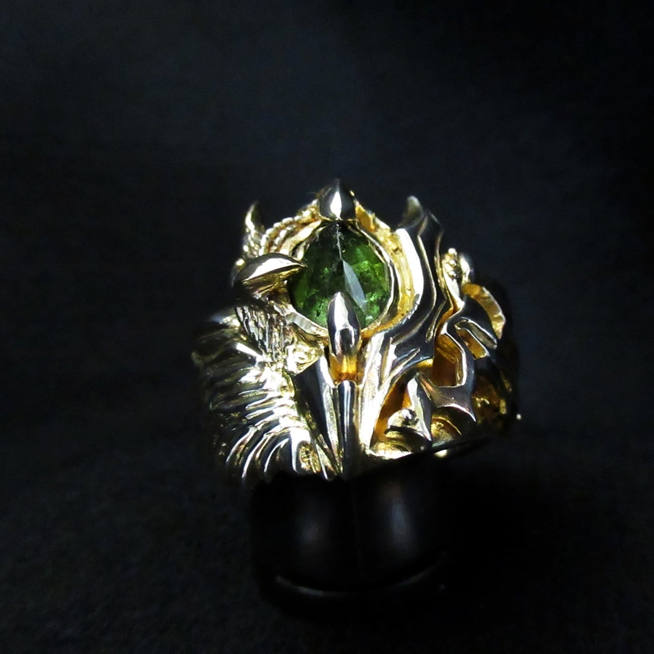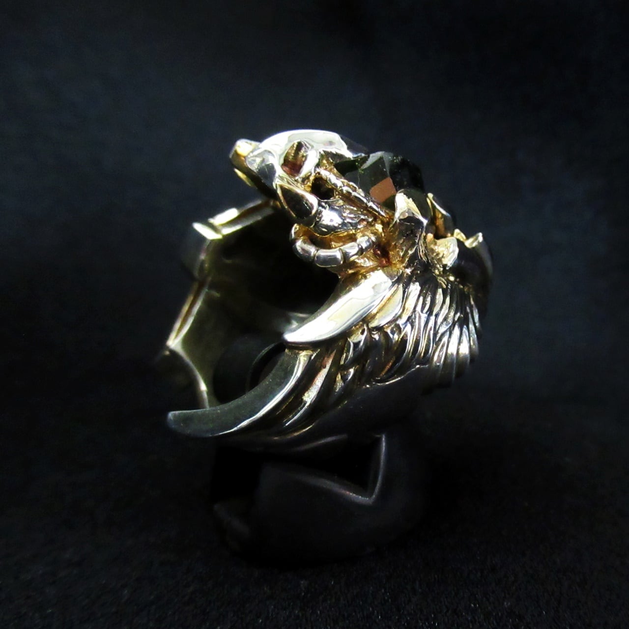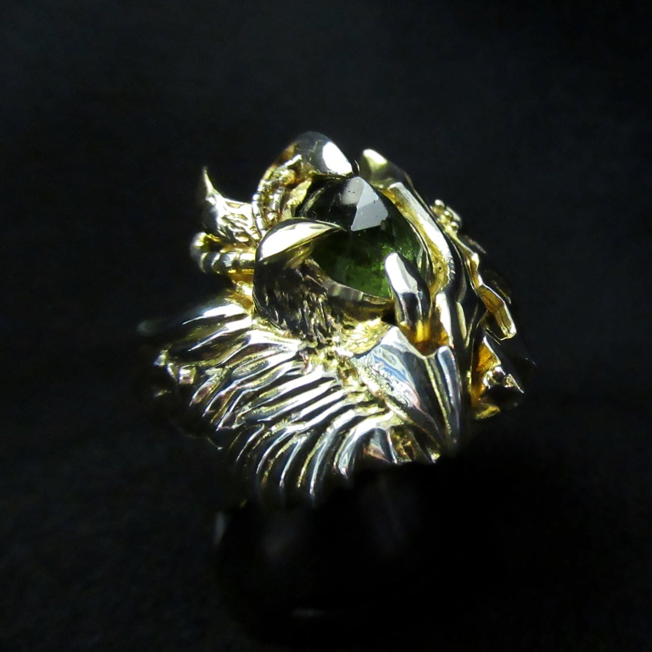 半分は生体、半分はメカニカルな翼の中心には、このRINGの為にチョイスされたグリーントルマリン
