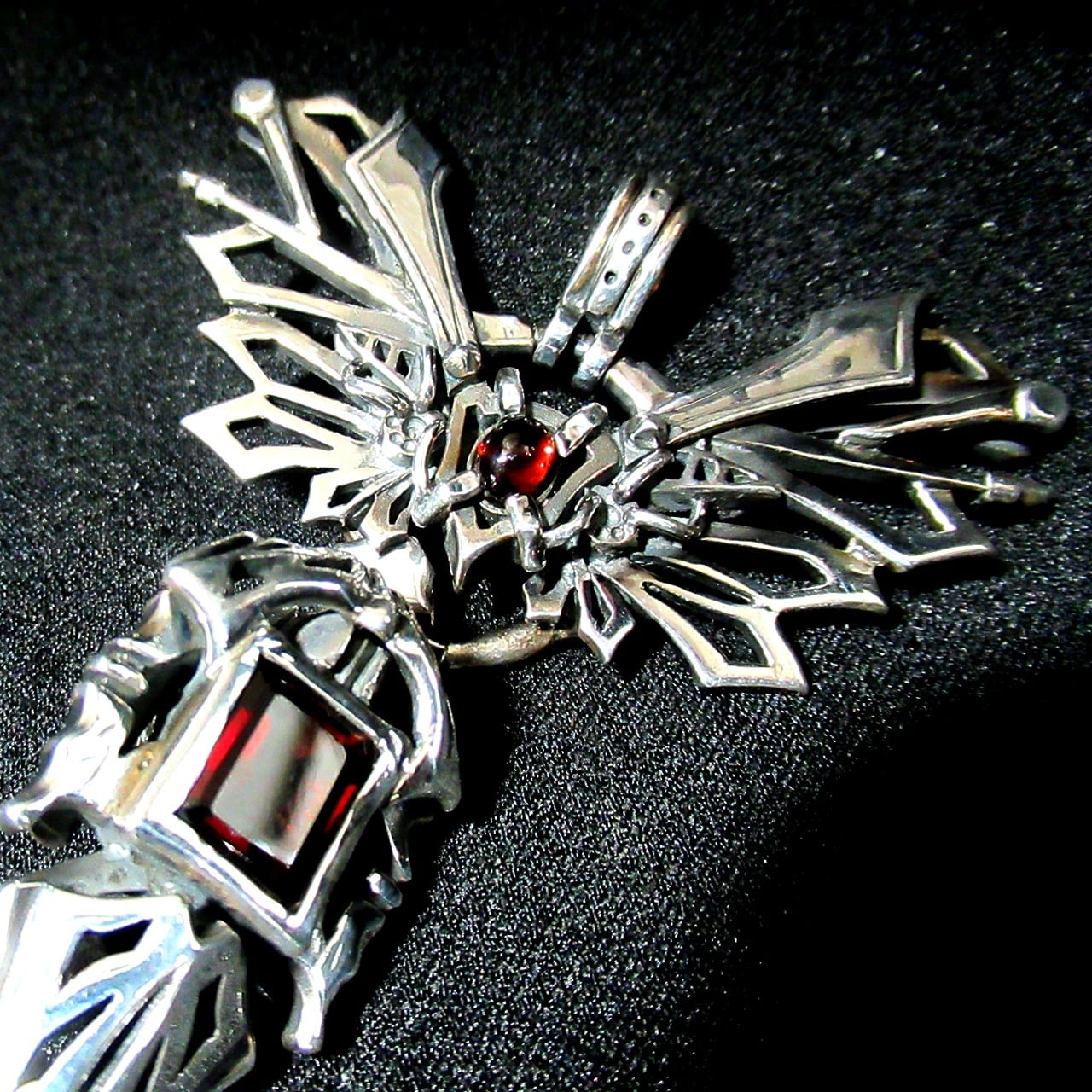 パーツ一つ一つ丁寧に左右対称に創るために、一つパーツを創る度にSILVERの板を張り合わせ削り出し、また二つに分けてを繰り返し左右のバランスを揃えながら創り出されたメカの翼は、絶妙な手造り感を残しながら左右に大きく広がります