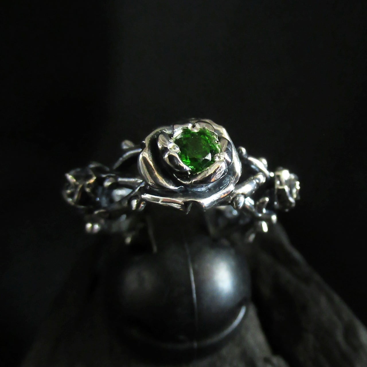 薔薇の花にはグリーンの綺麗なクロムダイオプサイトが入ります