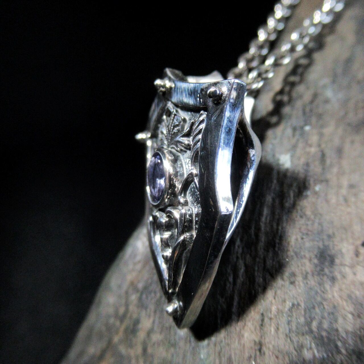 盾をモチーフにヨーロピアンジュエリーを思わせるゴシック調の細工を施した、RPG感全開なペンダント
