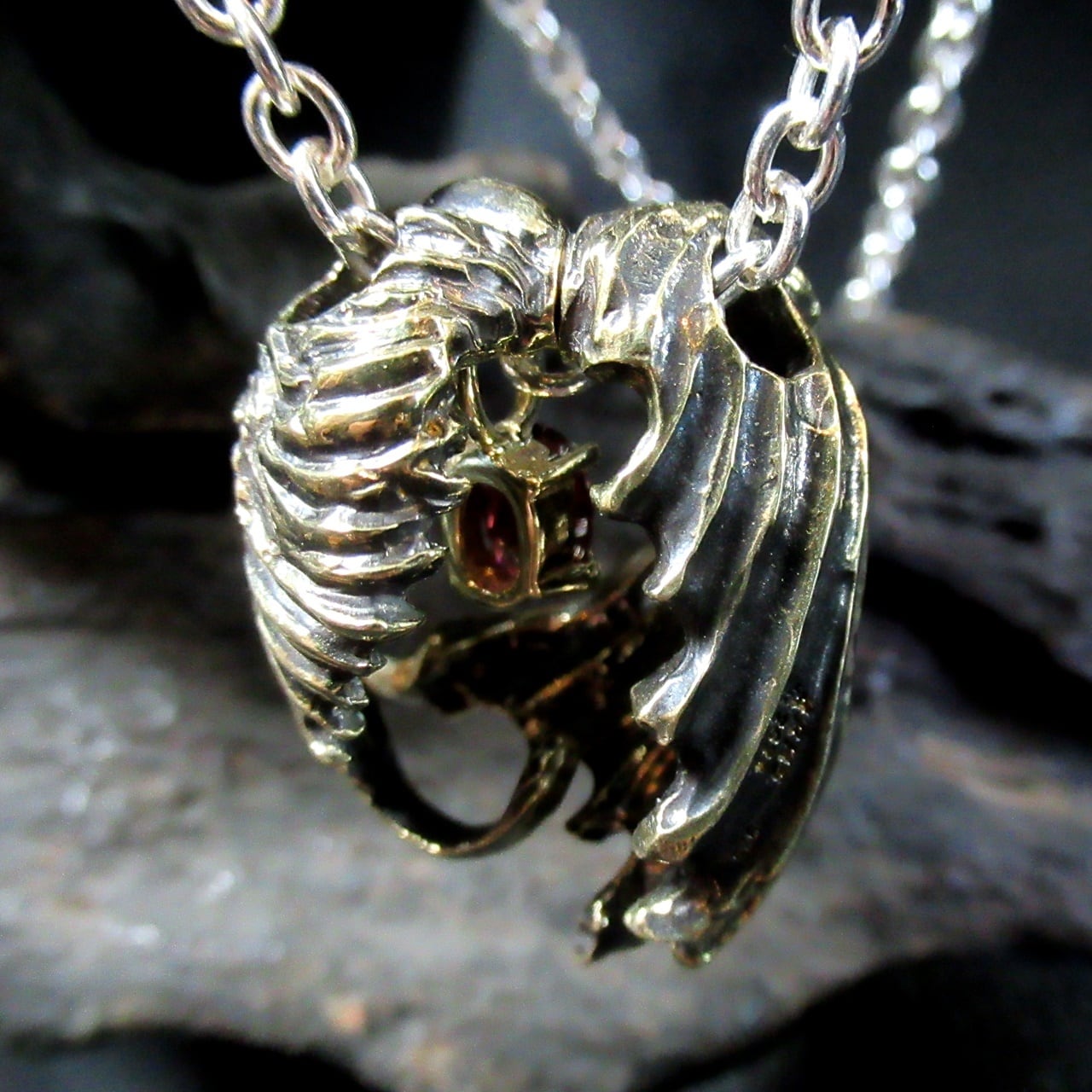 天使と悪魔、二つの相反する存在が一つに融合しストーンを包み込む様にハートが現れる様に創られております