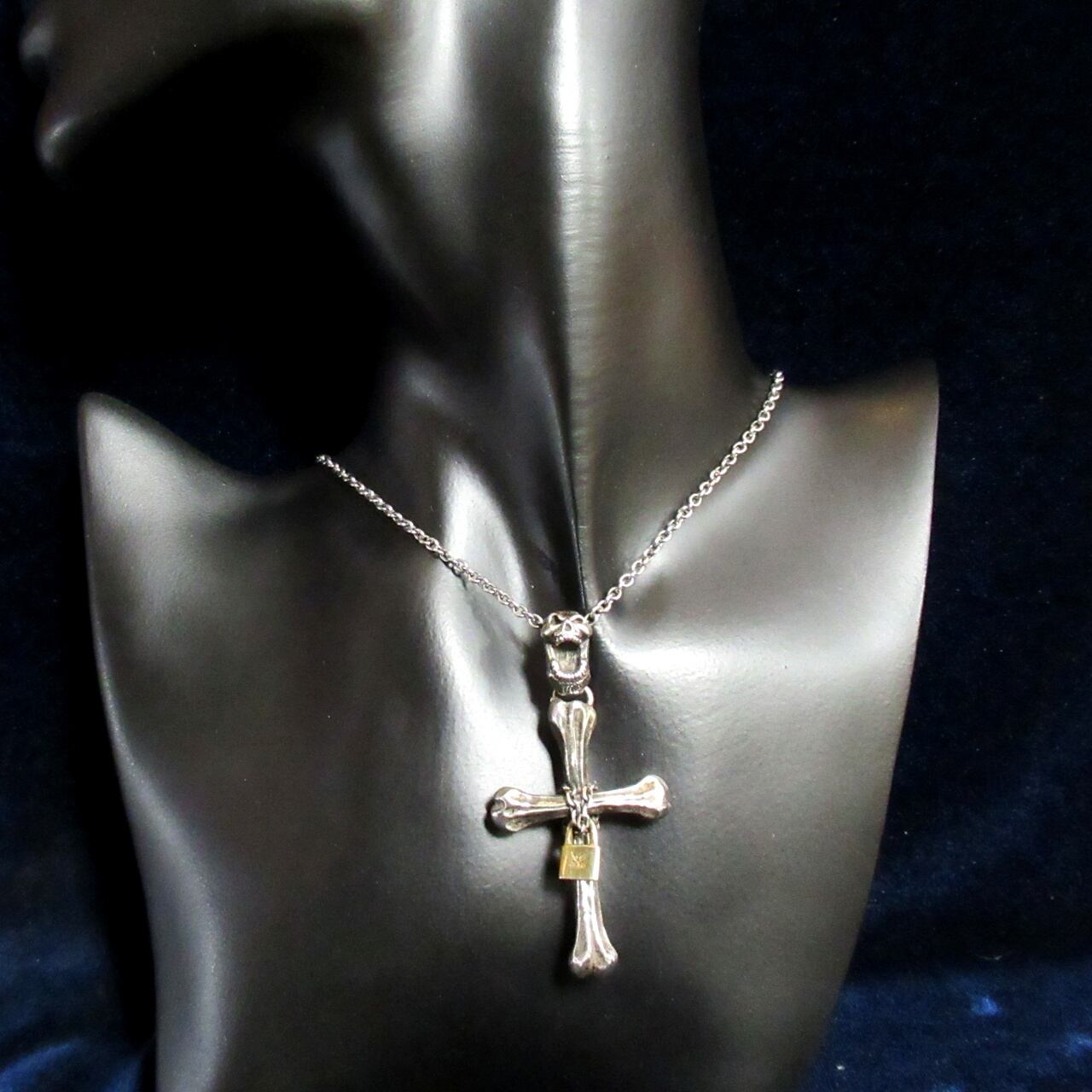 生と死の象徴であり、マイナスなイメージだけではないスカルをクロスとして表現しています。