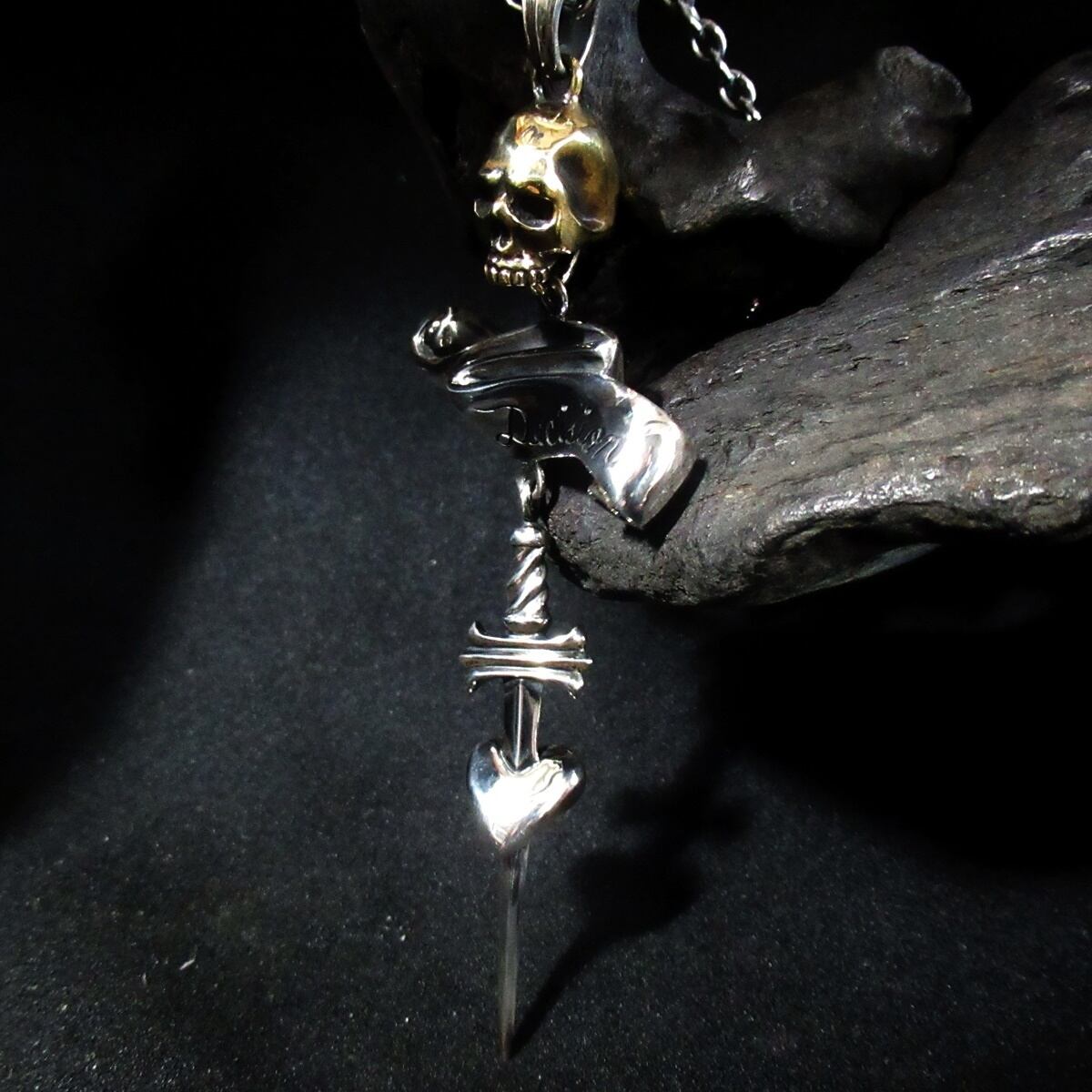 スカル、ドレープ、ダガーと特徴的なモチーフを組み合わせ、全体をクロスのようなシルエットに仕上げました