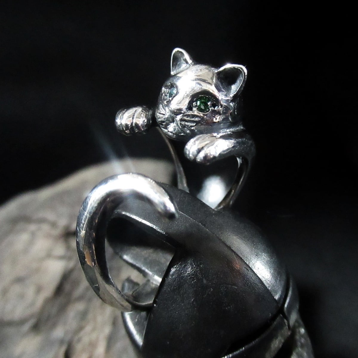 猫好きなら絶対惹かれるアイテム可愛い瞳にはグリーンとブルーのジルコニアをセット