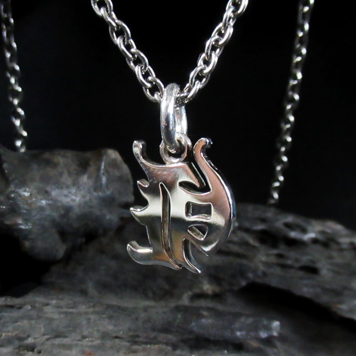定番のイニシャルペンダントトップを、オールドイングリッシュやブラックレターとも呼ばれるフォントで製作した、オリジナル商品です。
