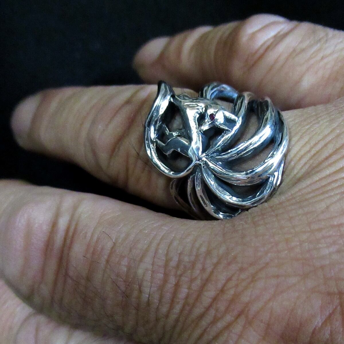 そんな九尾の狐をリングの尻尾部分をうまく使い、リングのデザインに落とし込みました。
