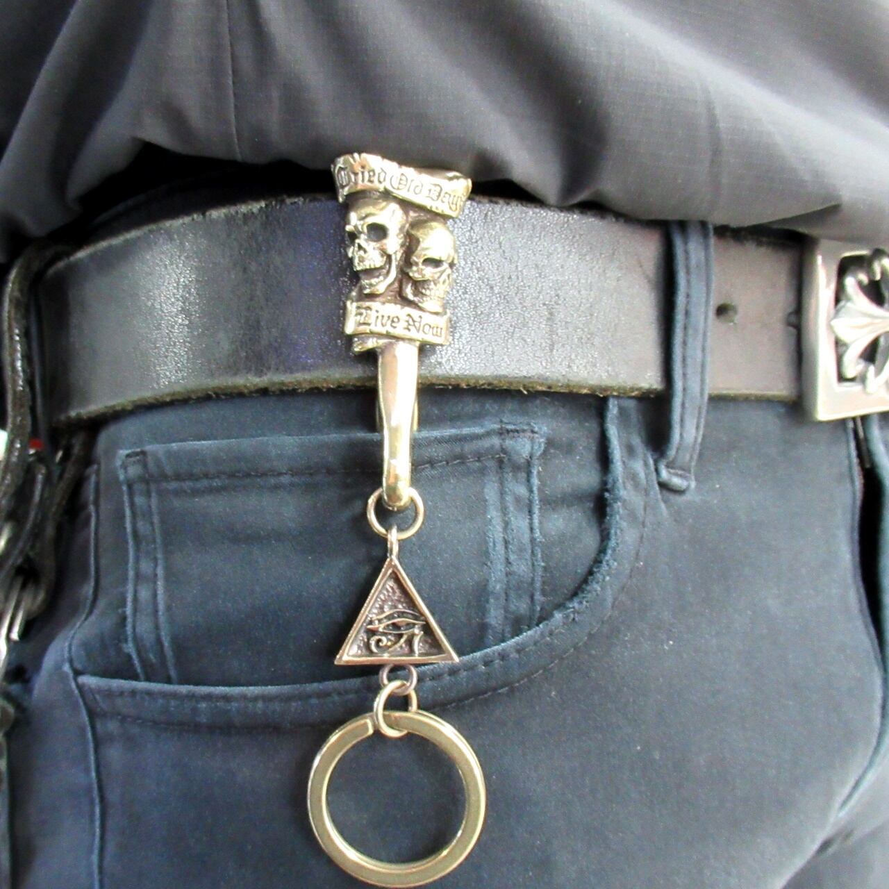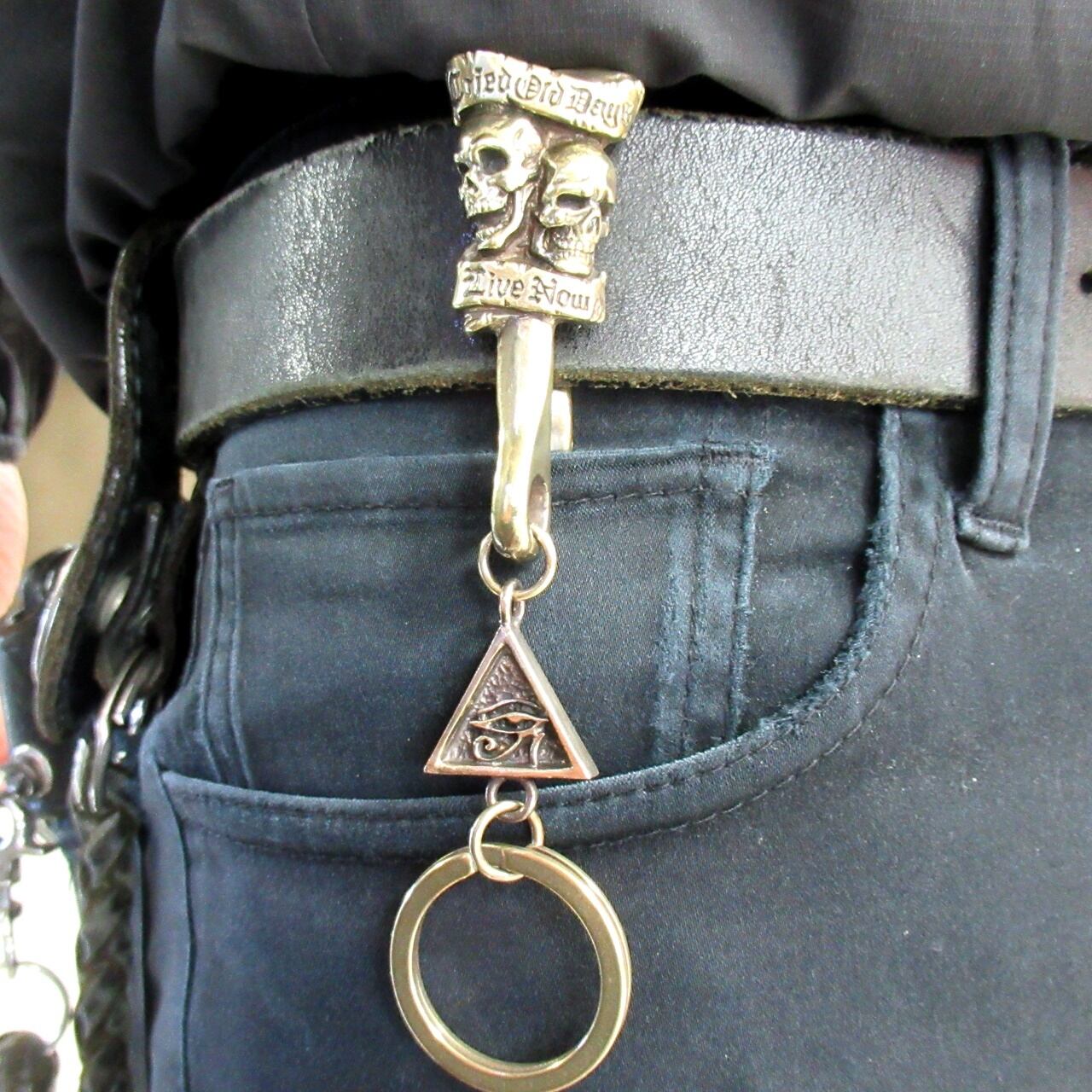神秘的なホルスの目とダークなツーフェイススカルが融合したデザインのキーフックになります